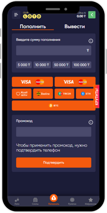 Лото клуб онлайн сайттың мобильді нұсқасы жүктеуді және орнатуды қажет етпейді. Кез келген мобильді браузерден сайтқа кіргенде ол автоматты түрде ашылады. Интерфейс сенсорлық экрандарға толық бейімделген, сонымен бірге десктоп нұсқасының бүкіл функцияларын сақтайды: барлық ойындарға қолжетімділік, қаржылық операциялар, бонустар және қолдау қызметі.